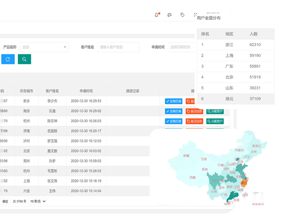 从客户申请、跟进、签约、进件到转化全过程追溯,实现精细化运营,提升客户管理效率。
